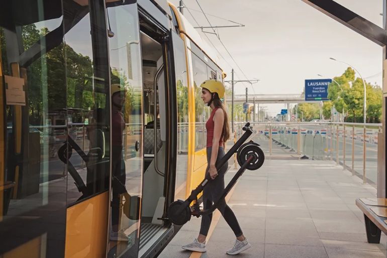 Ninebot E25 оснащён модернизированным механизмом складывания, позволяющим сложить самокат одним нажатием на педаль. Вес около 14 кг, простое вытягивание и переноска одной рукой. Легко переносить на лифтах.