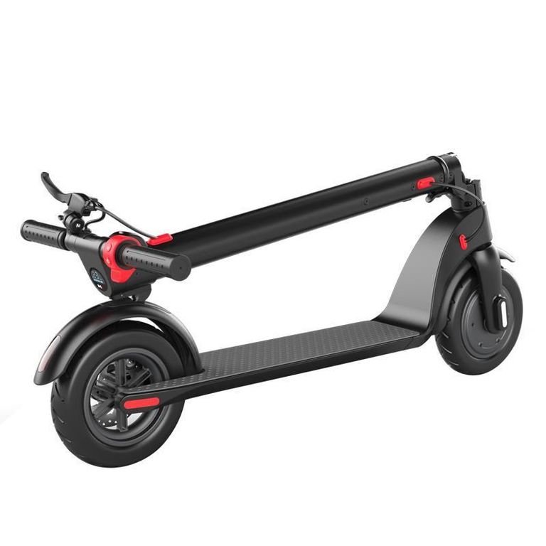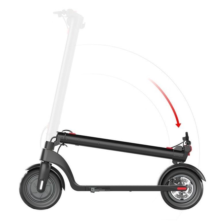 - У ЭЛЕКТРОСАМОКАТА HX-X7 — передний привод. Электромотор имеет мощность 350 Вт в номинале и 700 Вт пиковой. Такие показатели позволят разогнаться до 25 км/ч и преодолеть небольшие препятствия.
