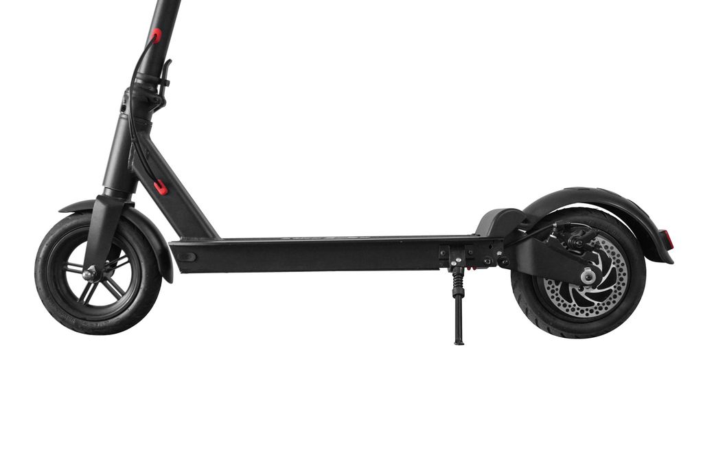 Самокат в сложенном состоянии занимает немного места, поэтому его можно перевозить в общественном транспорте и хранить дома. При этом для парковки складывать самокат необязательно – можно просто выставить подножку.