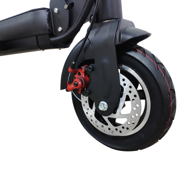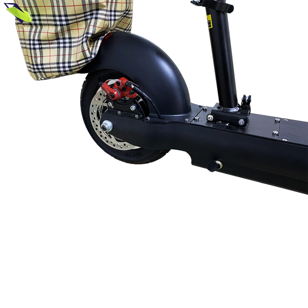 - У этого электросамоката нет амортизаторов, но есть большие накачиваемые колеса. Они легко справляются со своей задачей — мягко и плавно идут даже по голому грунту и щебенке. Дополнительно будет смягчать пружина под сиденьем.