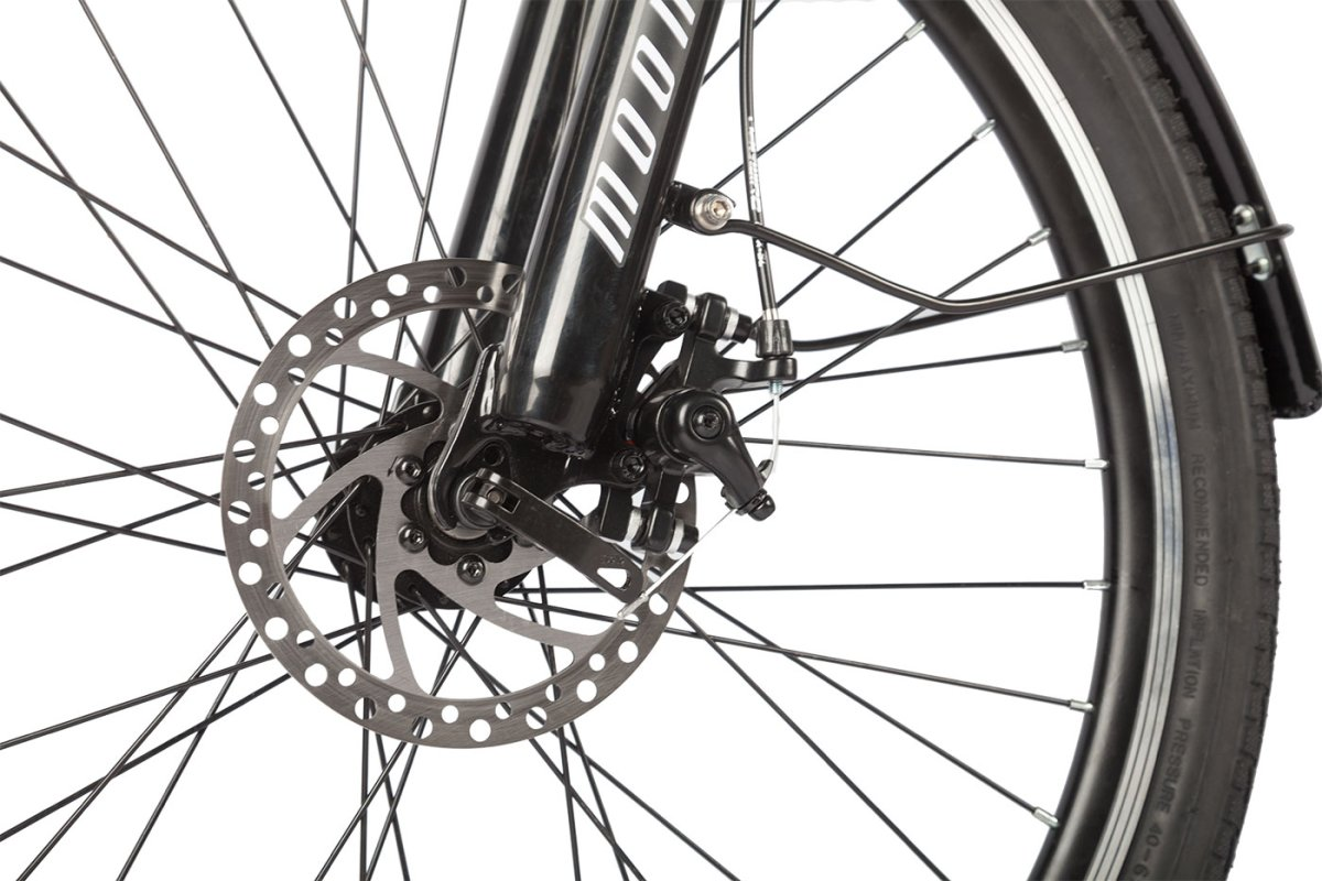 Gelbert Moon оснащен дисковыми механическими тормозами спереди и сзади, что гарантирует надежное и безопасное торможение в любых условиях. Эта система позволяет уверенно контролировать скорость даже на высоких темпах.