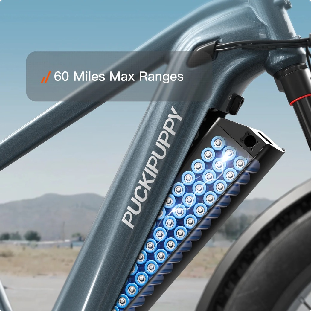 Электровелосипед PUCKIPUPPI BEAGLE оснащён двигателем мощностью 500 Вт, который обеспечивает уверенный разгон и позволяет развивать скорость до 45 км/ч. Этого достаточно для быстрого передвижения по городу и комфортной езды по загородным маршрутам. Задний привод гарантирует хорошее сцепление с дорогой и устойчивость при старте с места, а также при движении по мокрому асфальту или грунту. Двигатель работает плавно и тихо, не создавая лишнего шума и вибраций.