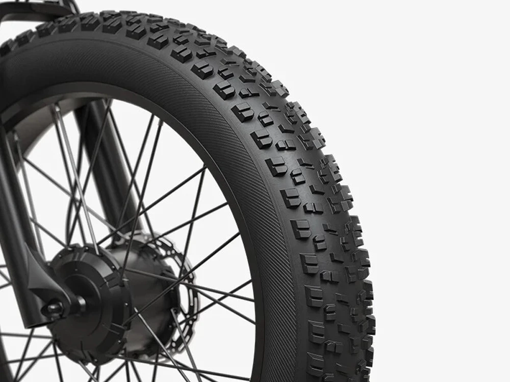 Модель укомплектована колесами диаметром 26 дюймов с шириной покрышек 4 дюйма, что относит ее к классу fatbike и гарантирует уверенное поведение на сложных покрытиях. Широкие шины создают низкое удельное давление на поверхность, благодаря чему велосипед не проваливается в песок, снег или болотистый грунт. Протектор с агрессивным рисунком обеспечивает надежное сцепление при движении по грязи, рыхлой почве и скользким участкам.
