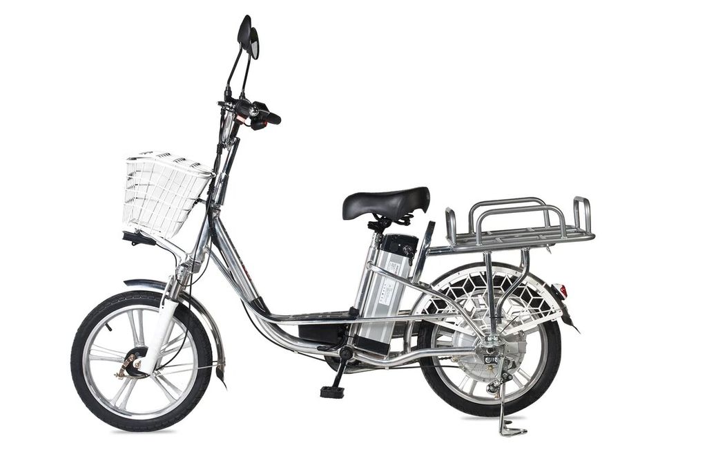 - Колхозник V8 умеет дополнительное сидение для второго пассажира и сетку для продуктов спереди. Идеальный загородный вариант электровелосипеда.