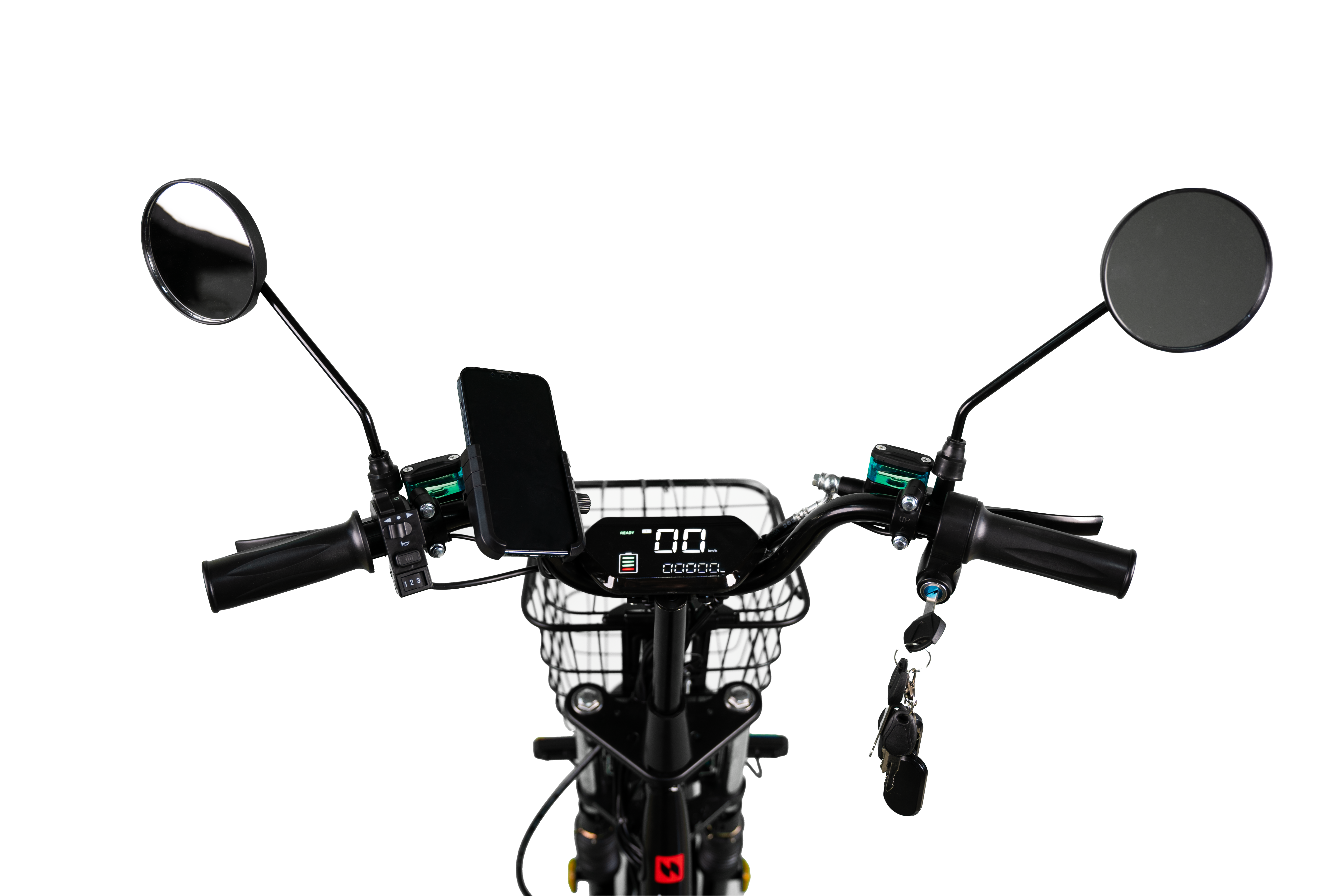 Электровелосипед Samik V3 Pro оборудован современными фарами и ходовыми огнями, что обеспечивает отличную видимость в темное время суток и повышает безопасность. Бортовой компьютер на руле позволяет отслеживать скорость, уровень заряда аккумулятора и другие важные параметры, что делает управление велосипедом более удобным и информативным.