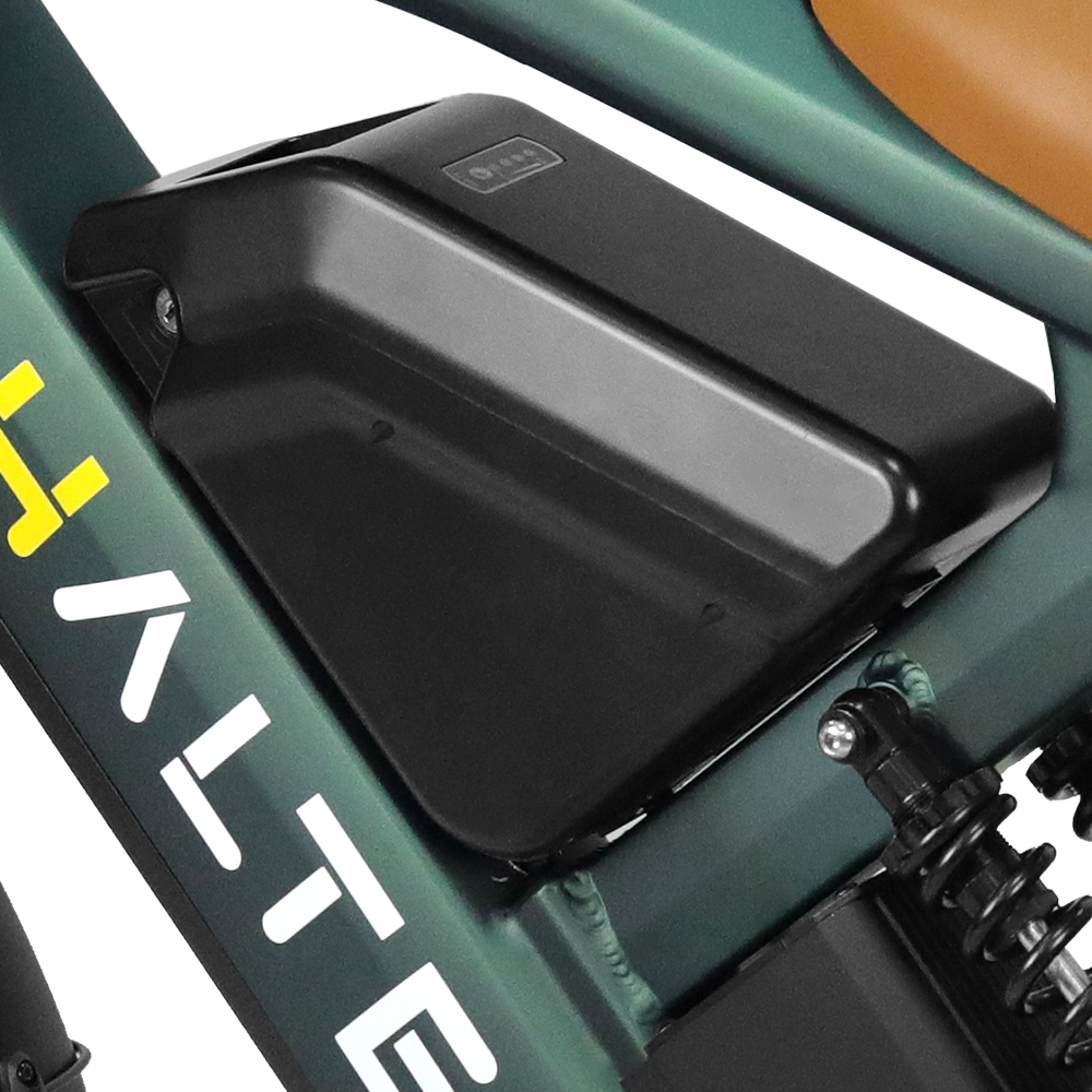 Электровелосипед HALTEN Energy оснащен мощным аккумулятором емкостью 40 Ач и напряжением 52 В, что обеспечивает отличную производительность и запас хода до 120 км. Это позволяет вам совершать длительные поездки без необходимости частой подзарядки, что особенно удобно для тех, кто планирует активные выезды на природу или дальние маршруты.