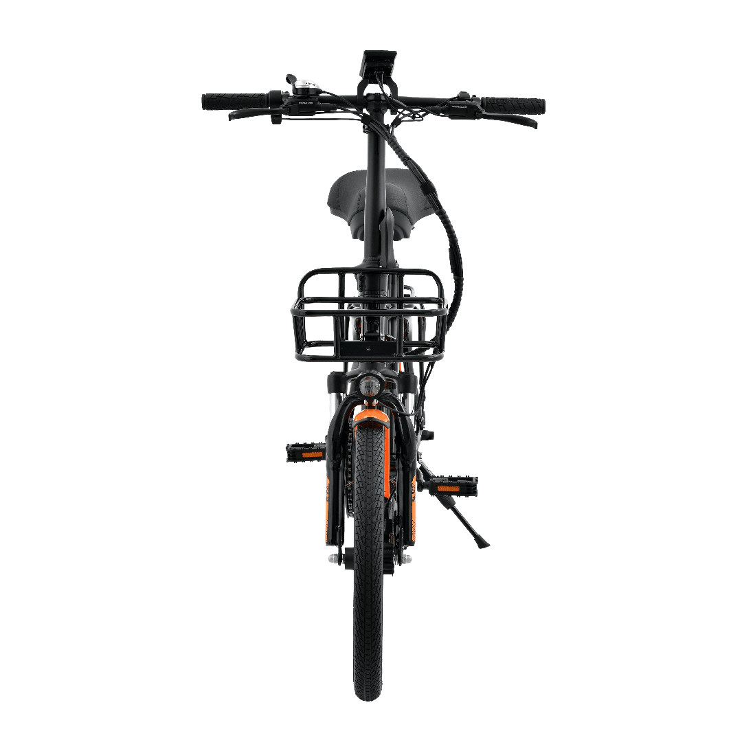 - Вместительный бокс на рулевой стойке выдерживает до 50 кг груза, что делает его идеальным для перевозки различных предметов.